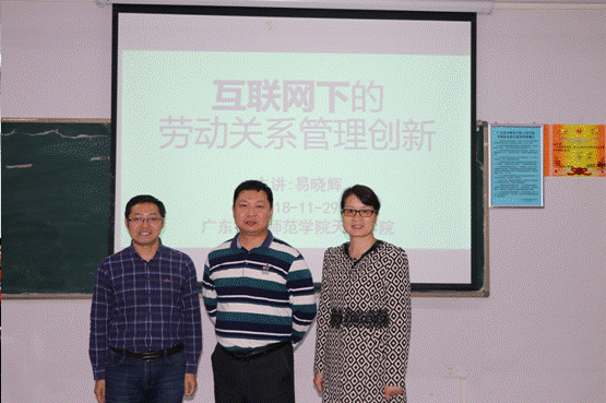 11月29日下午,伟德国际1946在11栋1004举办了一场人资专题的学术讲座,讲座特邀了人力资源管理专家、广东省人力资源研究会理事易晓辉先生,给人力资源系的员工讲解有关互联网下的劳动关系管理创新知识。