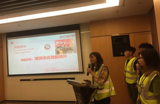 30日上午,京东亚洲一号物流园区为同学们举行了隆重的欢送会。会议的第一个议程是课题展示。京东在培养人才时,把“轮岗体验+课题”作为学习内容的核心部分,要求员工在实践过程中运用所学的理论知识去检验实践活动,发现问题、分析原因、找出对策,学以致用。首先,6个小组的同学分别用PPT演示了课题报告的成果,课题名称有:理货综合效能提升、端口定位拣货、纸箱投落通道及货架间空隙改善方案、拣货作业综合优化方案等。接着,企业领导对同学们的汇报进行了点评,既肯定了同学们的优点,也指出了PPT制作中的不足,方案的可行性方面论证不充分等问题。最后,企业根据各小组的表现,评选出了两个优秀小组并颁发了奖状。第二个议程是企业为在实训活动中表现突出的蔡林秀、方晓燕等8名同学颁发了“优秀学员”荣誉证书。