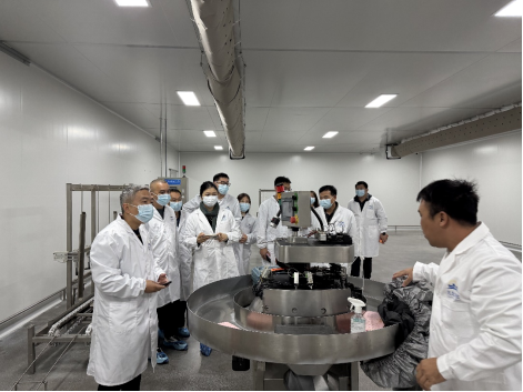 图:调研团队参观湛江鸡种苗培育车间