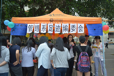 (通讯员 梁秀仪)4月23日下午,管理系《足迹》编委会各成员参加了在一饭灯光篮球场举行的“图书馆第五届读书月启动仪式暨游园活动”并设置了一个摊位,与全院同学进行互动。