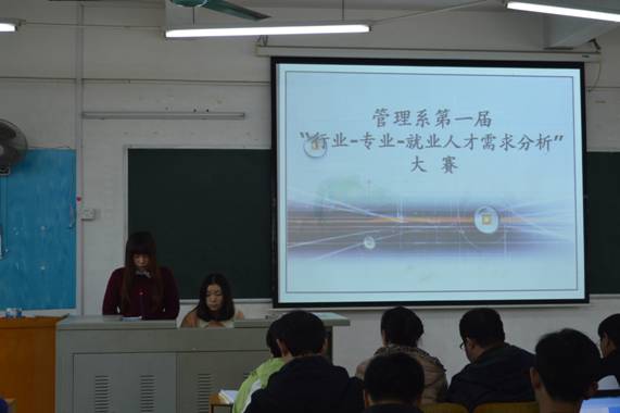 主持人宣布管理系第一届“行业-专业-就业人才需求分析”大赛开始