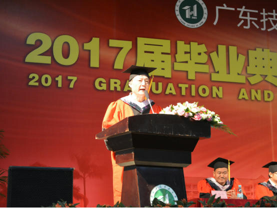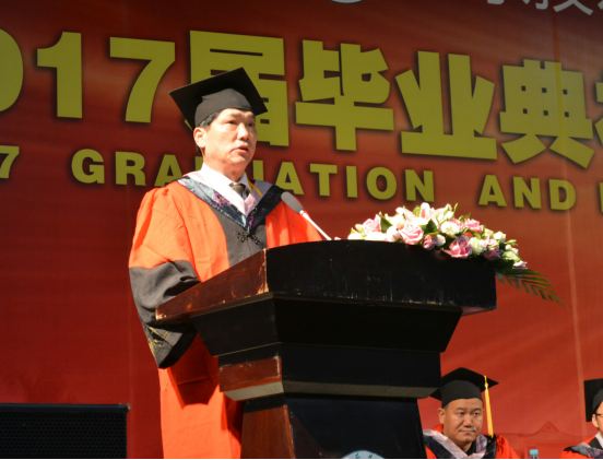 曾建权经理致辞并宣布《学士授予决定文件》。曾经理向毕业生们提出了六点希望:第一,适应形势;第二,脚踏实地;第三,不断学习;第四不断创新;第五,懂得感恩;第六,自强不息;并祝愿毕业生们前程似景、事业有成。