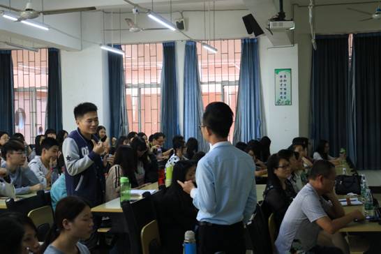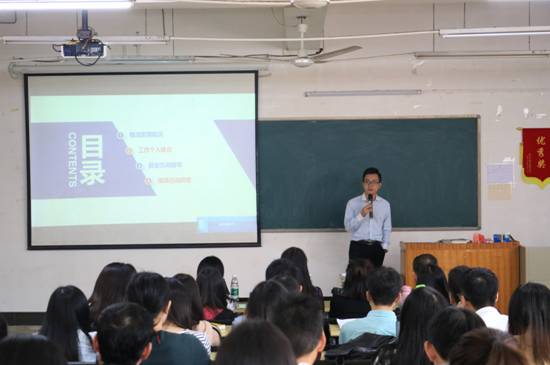 欧振光风趣幽默,侃侃而谈,配以精致的PPT文稿,畅谈了自己的成长经历。2011年就职知名的物流企业—德邦物流股份有限公司,从配载员、统计员到区域办公室主任,再到区域经理,一路心酸与汗水,伴随着喜悦与成功。他反复强调:一定要从基层做起,有目标、有追求,不断奋进。报告中,并就专业、职业与就业进行了精彩的演讲。现场互动,回答了同学们的问题,博得了阵阵掌声,会后又专门与大四员工进行了简短交流。