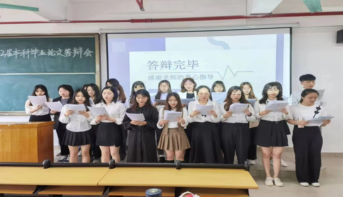在答辩正式开始前,毕业生宣读了诚信声明,对自己的论文内容进行保障,确保论文内容的真实性,准确性。线下答辩会上,毕业生按顺序依次参加答辩,答辩过程主要为现场陈述和评委老师提问两个环节。在现场陈述环节,同学们思路清晰,从容不迫,灵活运用所学的专业知识,对自己的论文展开精彩论述。在提问环节,各组答辩老师秉持着严谨、负责的态度,对同学们专业知识掌握的熟练程度进行了考察,并对同学们的毕业论文提出了进一步的修改建议。线上答辩会,老师和身在疫情防控区及应征入伍员工打破时空界限,在云端上进行毕业论文的汇报并与答辩教师进行交流,通过互联网构建了一场场精彩的线上毕业答辩。