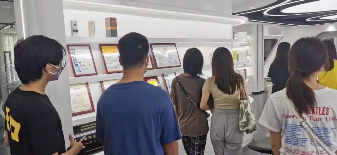 在负责人的带领下,同学们参观了莉妍的化妆品展览厅,类型丰富的化妆品、先进的研发技术、多个产品专利证书,这不得不让同学们感到惊叹和称赞。