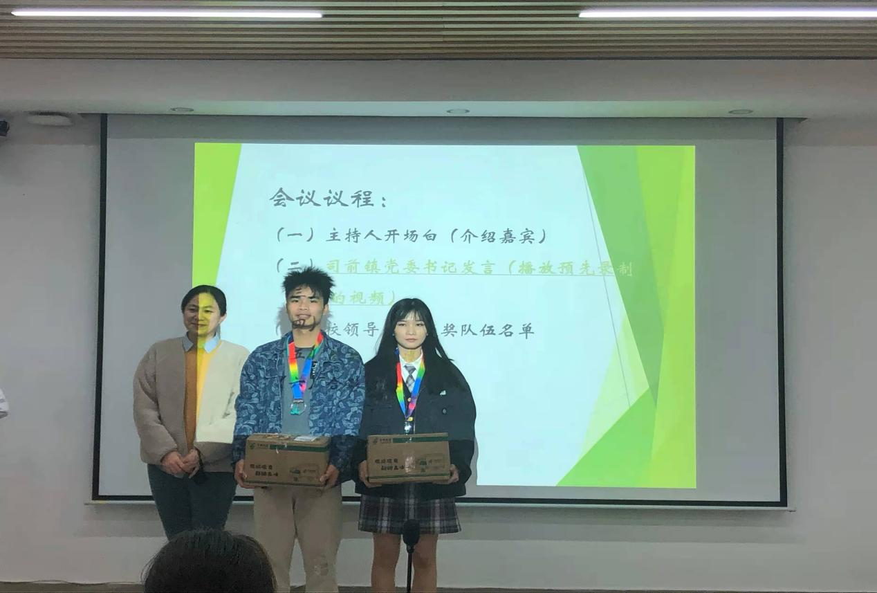 接着,校领导宣读获奖名单:一等奖:杨依冰小组;二等奖:陈晓君小组、黄晓明小组;三等奖:符立千小组、陈亮亮小组、聂丽娜小组;优秀奖:梁颖小组、黄耀莹小组、陈聪小组、陈钰洁小组、姚荣键小组;鼓励奖:欧婷婷小组、陈锦龙小组。