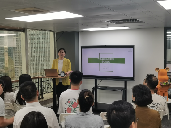 符云总经理为同学们深入介绍了三棵榕公司并欢迎同学们“回家”,符总通过员工代表逐个自我介绍来活跃现场的气氛,希望参访的全过程能轻松愉悦的进行。最后她重点强调了“猎头三要素”,那就是“勤、韧、谋”;符总希望通过这三个字能够启发同学们去追逐更好的自己。