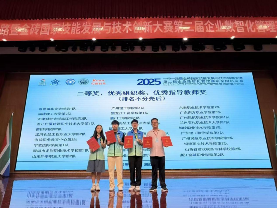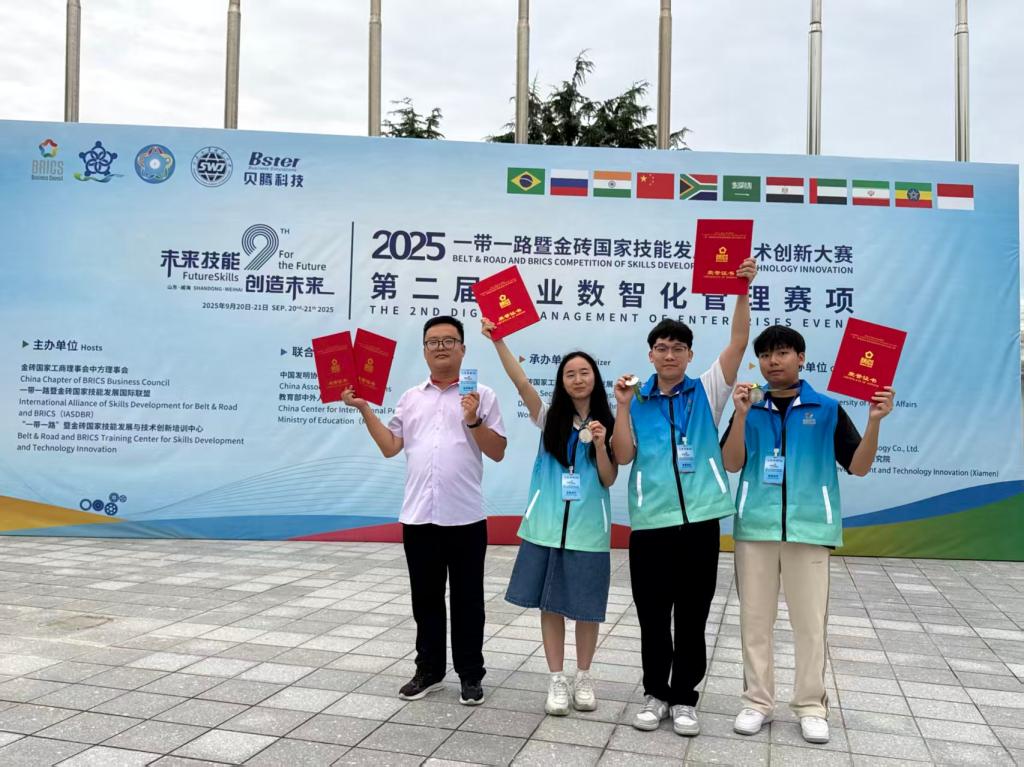 2025一带一路暨金砖国家技能发展与技术创新大赛之第二届企业数智化管理赛项全国总决赛定于2025年9月20-22日在山东省威海市山东外事职业大学举办。伟德国际1946由伟德国际1946学子胡丽美、尹乔烽、陈健诚组成的广理砺锋剑队,在苗增老师的指导下,获得了全国总决赛二等奖(银奖)。