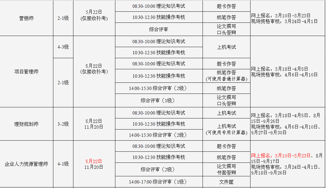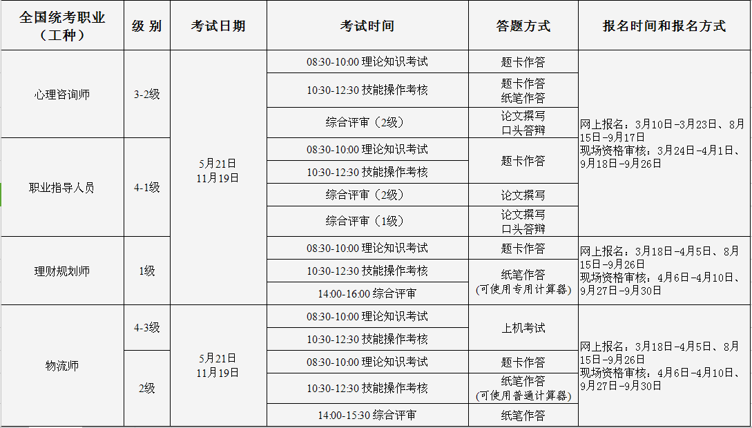 广东省2016年国家职业资格全国、全省统一鉴定安排表
