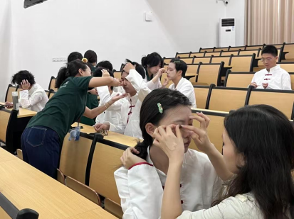 比赛正式开始前,公司合唱团成员提前到达1栋教学楼进行赛前准备。工作人员协助合唱团成员进行妆容完善与发型调整,助力公司合唱团以最佳形象去迎接比赛。