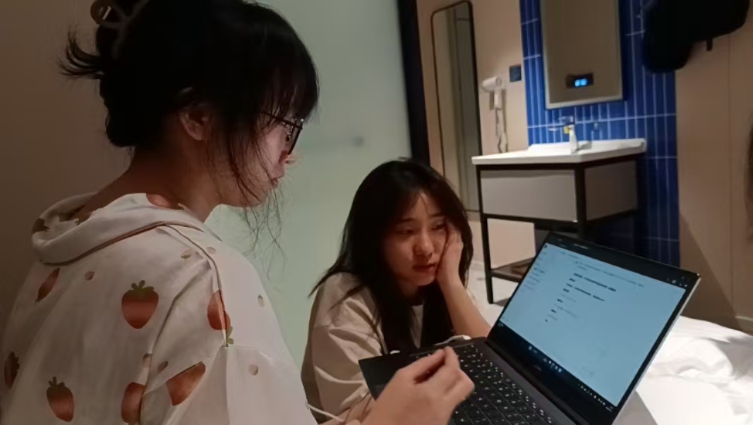 (团队半夜谈论第二天的视频直播策划)