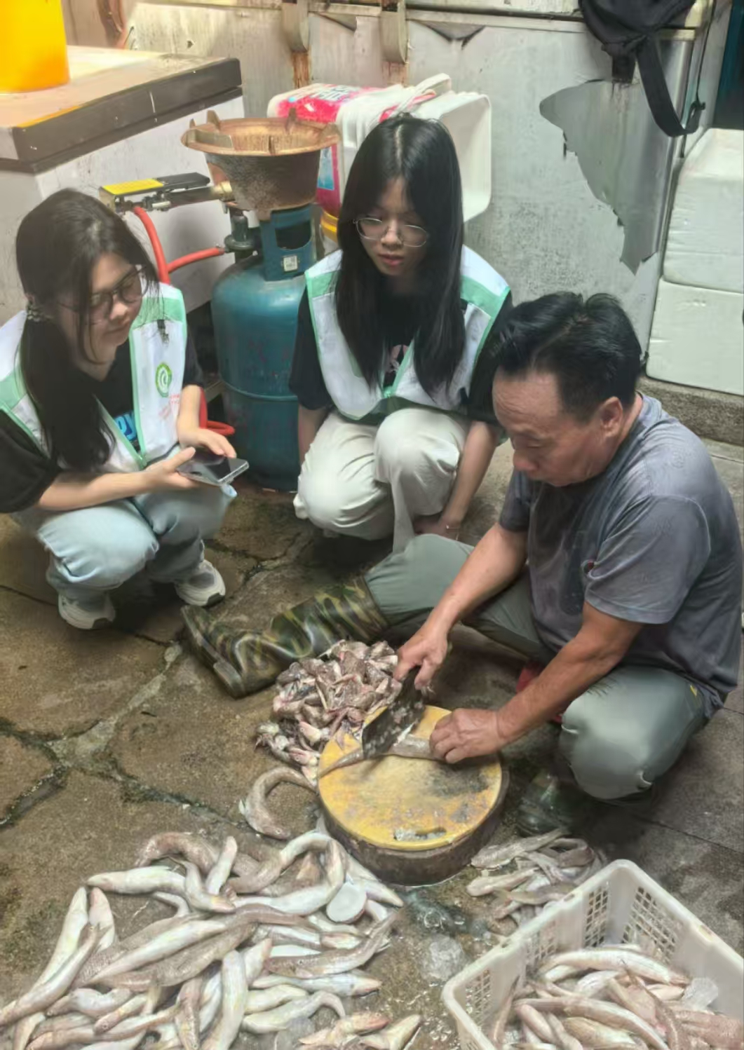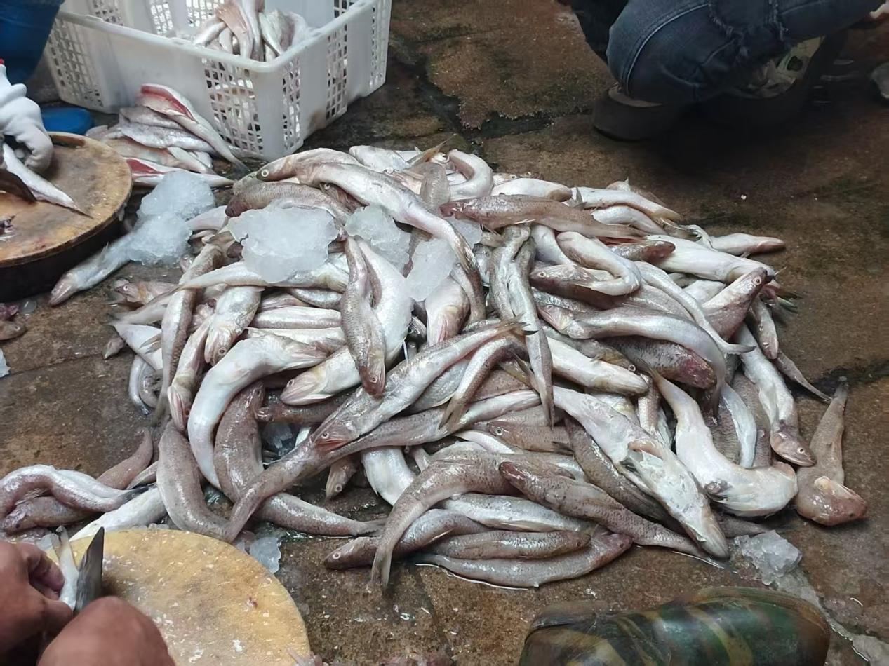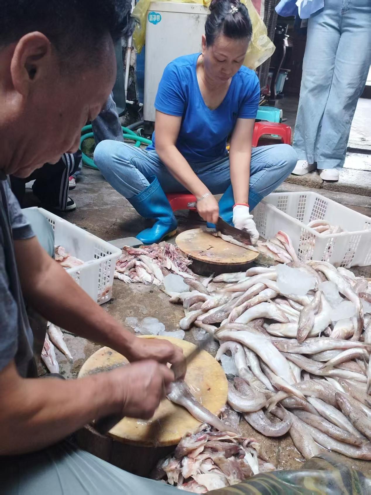 清晨的渔港刚卸下新鲜海货,我们的主角——那哥鱼便登场了。传承人告诉我们,做鱼丸选鱼是第一道关,那哥鱼肉质紧实、腥味淡,尤其是野生的那哥鱼,鲜味格外浓郁,是做鱼丸的“黄金选手”。