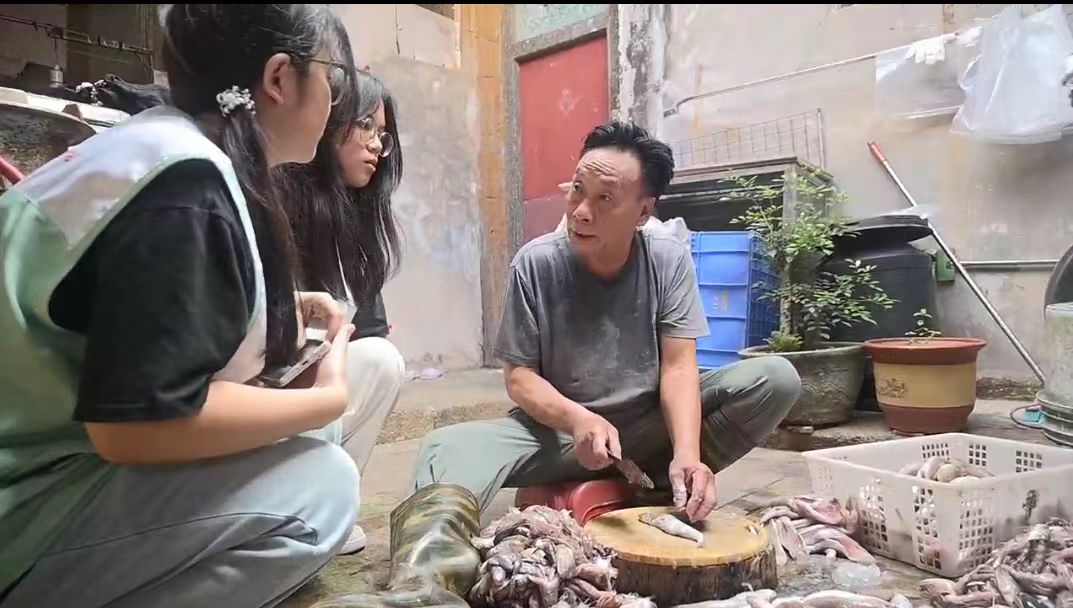我们顺时针揉、高举重摔,半小时后,松散鱼糜变韧,能拉细丝——这是Q弹关键。我们轮着来,胳膊早酸了,传承人却笑:“年轻时我能揉两小时,力气得匀着使。”