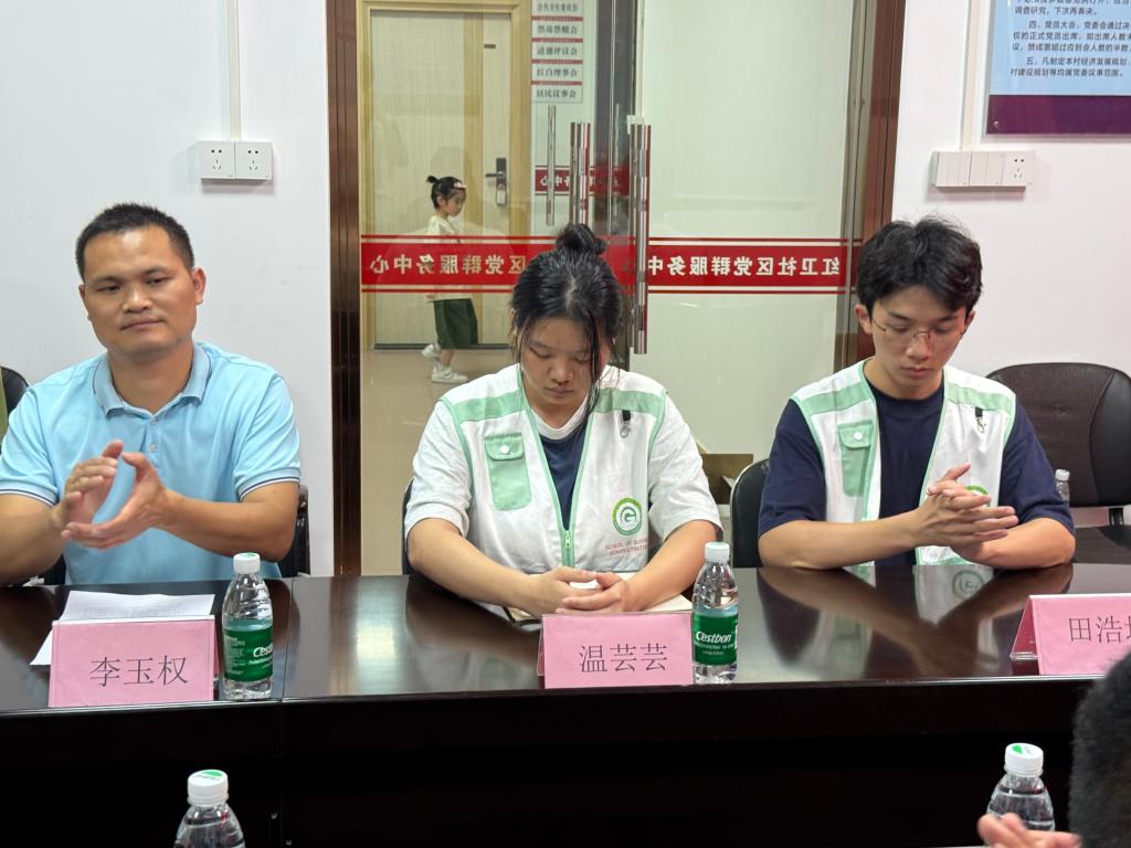 活动伊始,实践队与指导老师李玉权同红卫社区共青团书记余如龙、居委会副主任郑期中、东海街道驻村干部林蔓仪等开展座谈交流。会上,余如龙书记对实践队的到来表示热烈欢迎;林蔓仪干部详细介绍了红卫社区的建设成果与未来规划;李玉权老师阐述了公司“三下乡”实践活动的宗旨与目标;队长温芸芸则具体介绍了本次暑期DIY手工课堂的设计理念与活动安排。四方围坐,共绘社区教育新图景。