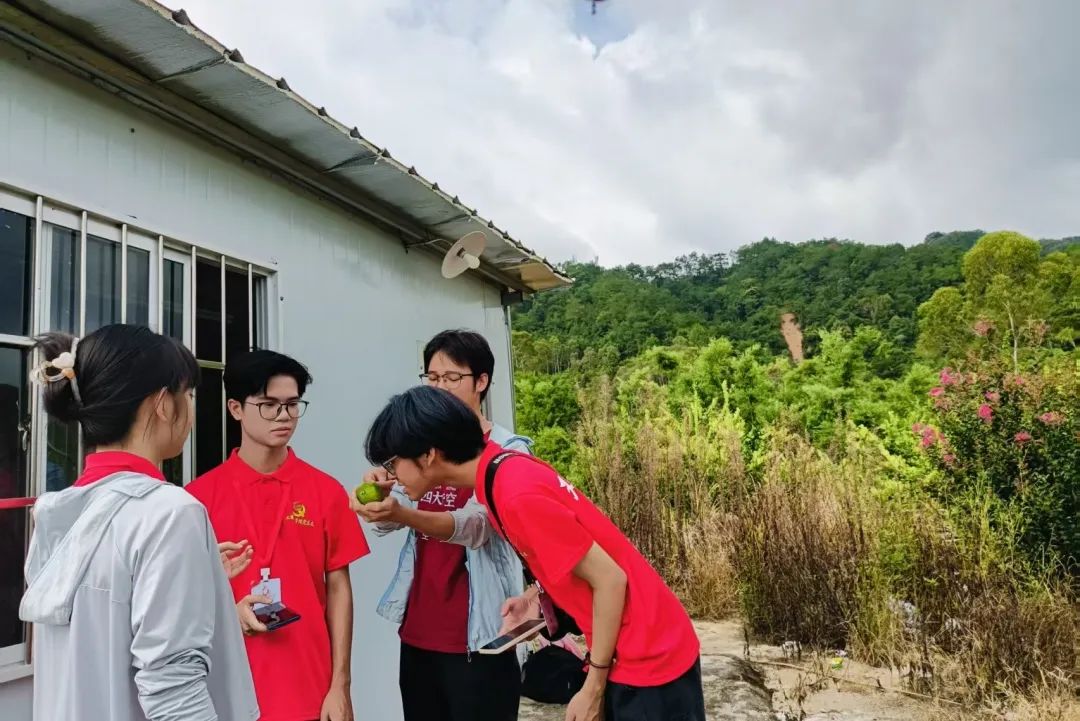 首先,实践队队员踏入加益镇香水柠檬基地,连片的柠檬树枝繁叶茂,饱满的果实缀满枝头,清新的果香在空气中弥漫。他们还会主动询问种植技术要点,不时用手机记录关键信息,在互动交流中深化了对香水柠檬种植及养护的认知。