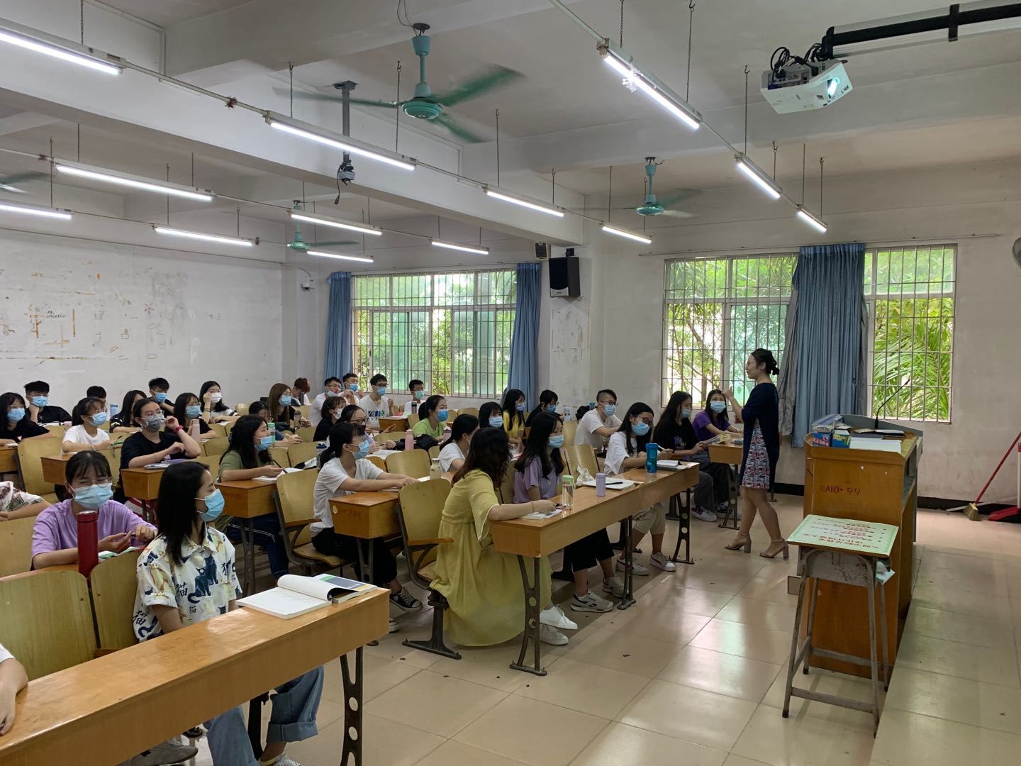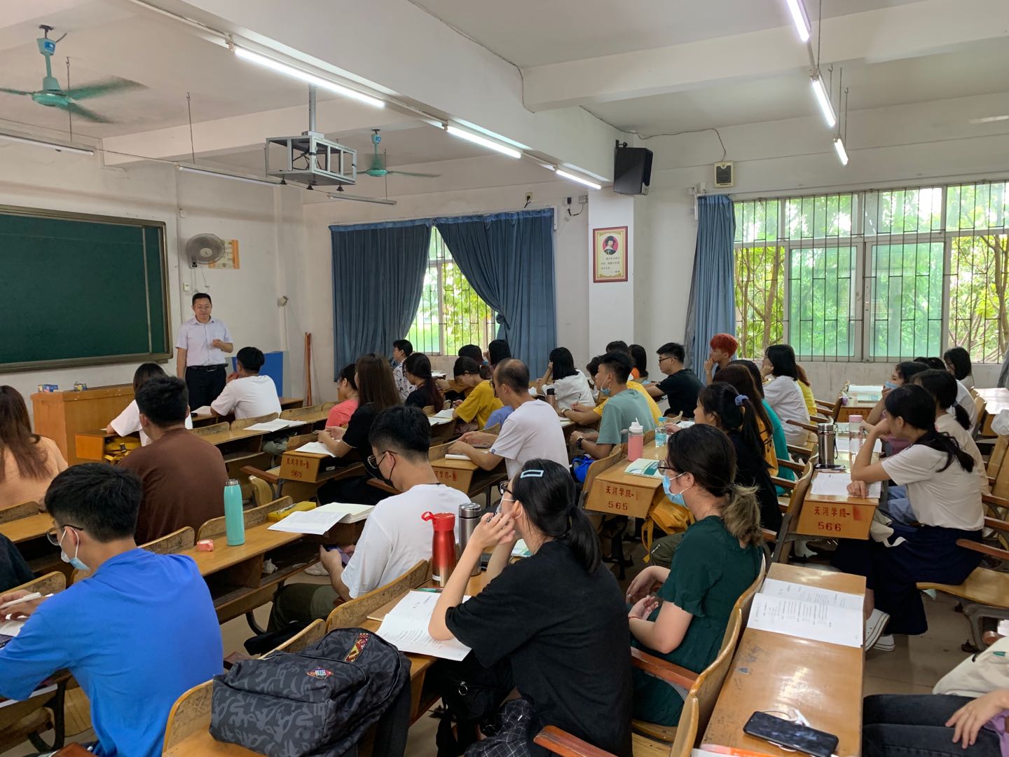在检查中,各班级教师与员工均能按照公司疫情防控的要求,做到了课堂环境的通风、员工之间保持距离就坐、课前师生共同学习公司校园新冠疫情防控须知、课堂上师生佩戴医用口罩等。阔别校园已久的师生们重新回到了校园,重新以熟悉的方式开始了学习,虽然口罩挡住了师生们的面容,但却挡不住同学们对校园课堂的向往、对学习新知识的热爱,也挡不住老师们教书育人的热情。