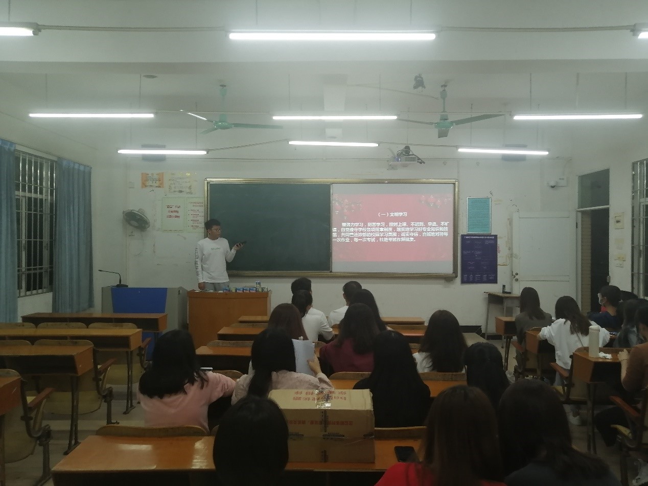 各班班导师与辅导员对学习、行为、上网、宿舍、课堂五个方面文明建设做具体举措传达。致力于切实抓牢课堂学习阵地,全力培育优良的学习环境,全面完善学风规章制度,积极营造网络文明新风,杜绝不文明行为的产生。各班在班会中指出学风问题深刻地影响着员工今后的进步和公司未来的发展。同时学风建设是一项系统工程,是系统内外各种要素相互作用的长期积淀,必须坚持内外兼治、综合治理、持之以恒的建设原则,学风才能呈现出新的面貌。