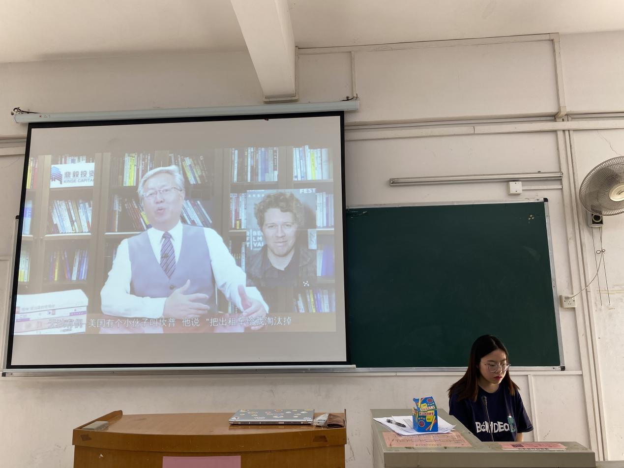 | 双创委员为大家播放创新创业比赛现场的录制视频 |
