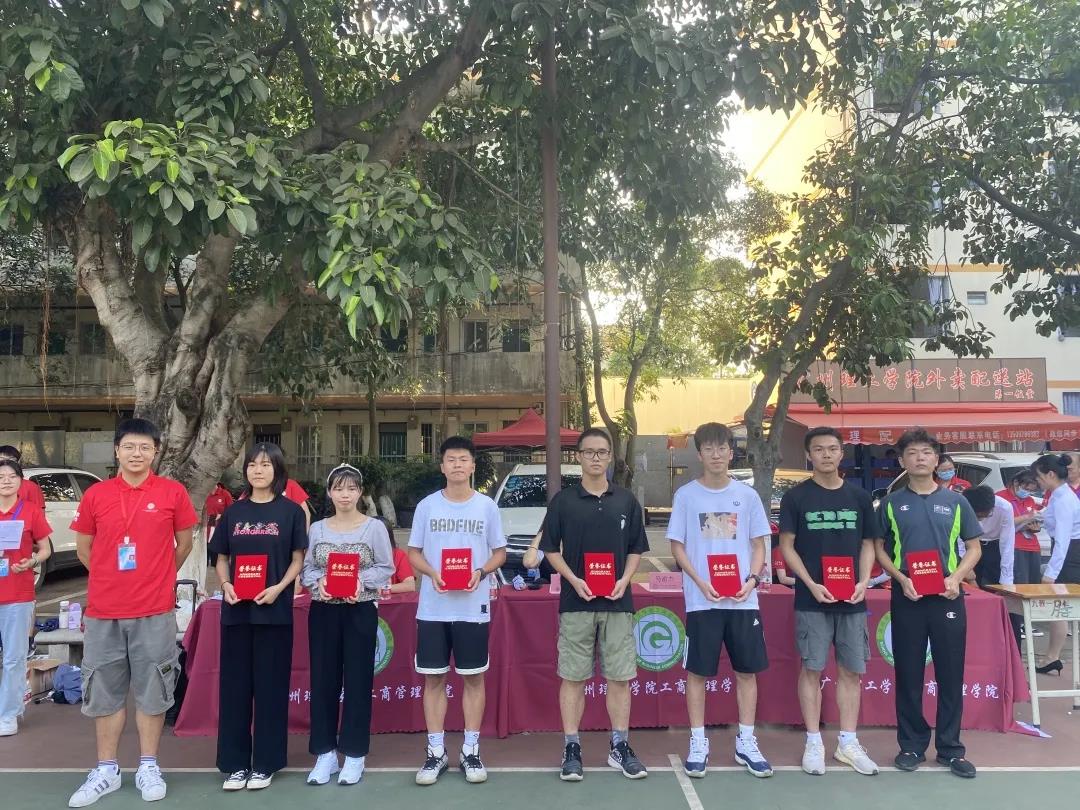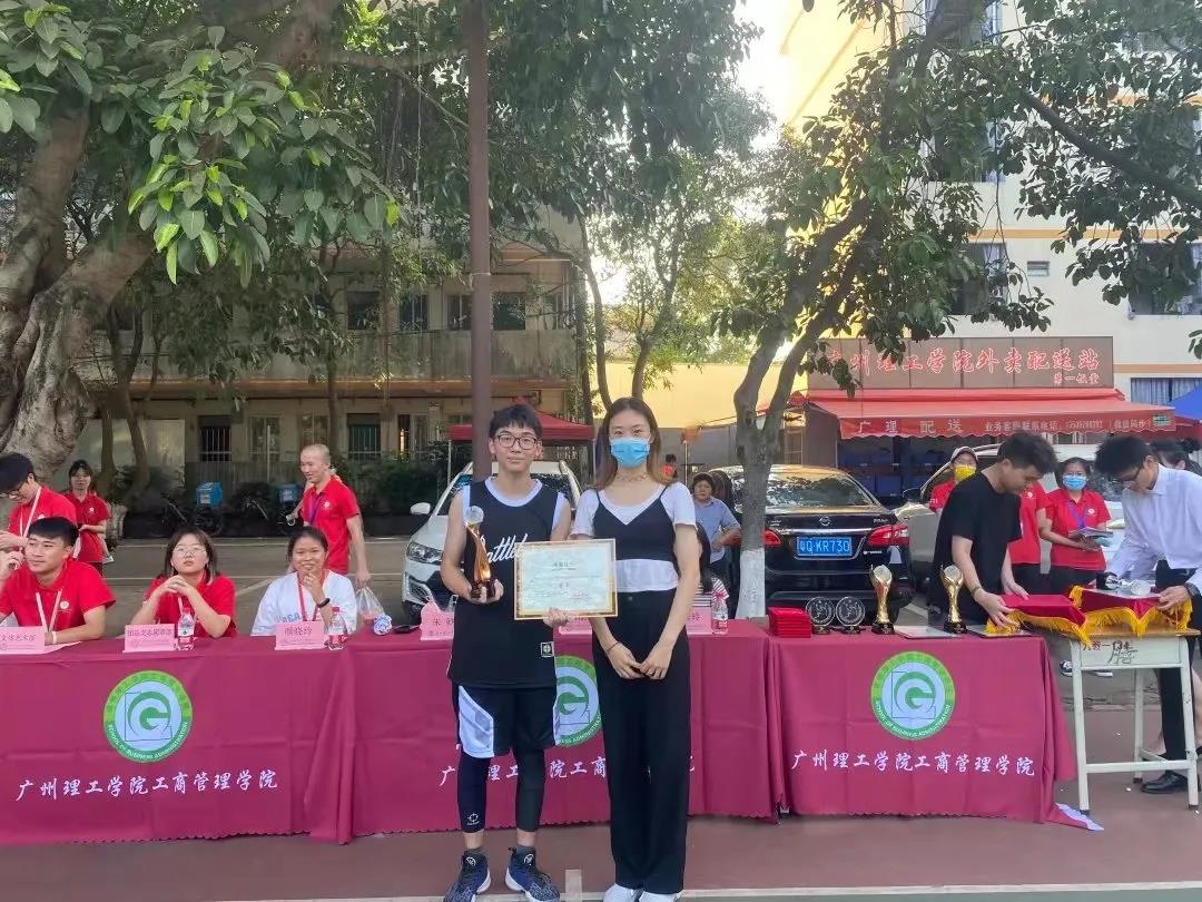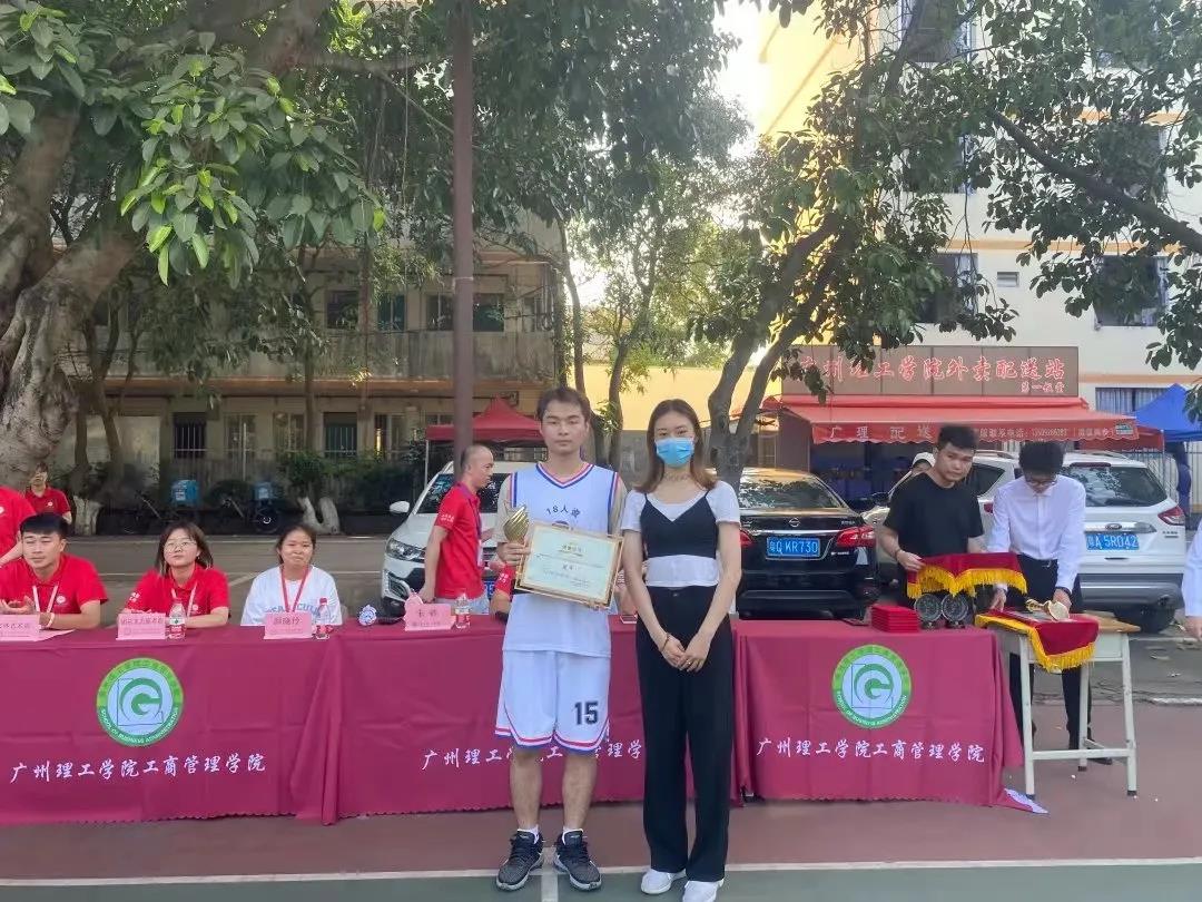 | 团总支副书记兼员工会常务主席颜晓玲为简倩玥以及付宏经颁发篮球赛个人MVP奖 |