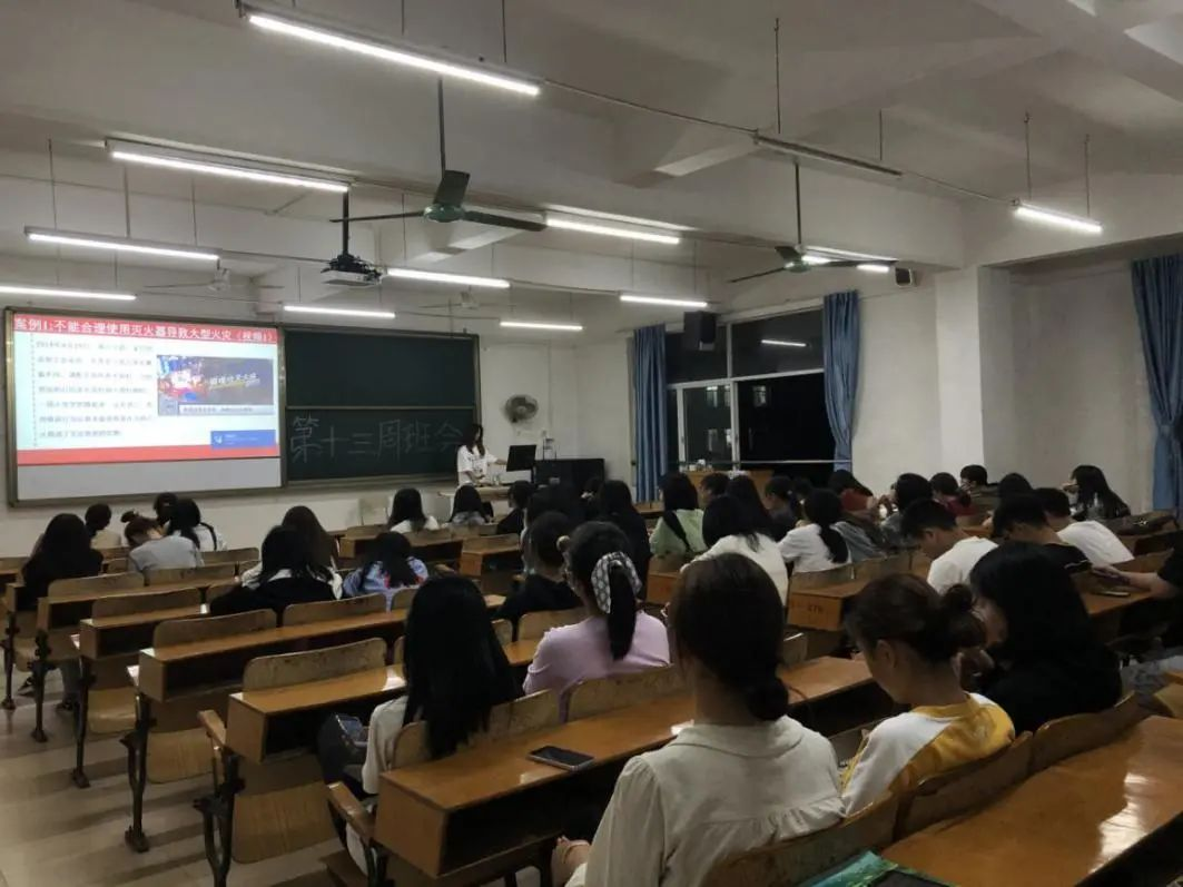 班会上,各班班委向同学们讲解了消防安全知识,详细说明了消防安全的“四个能力”。一是要有检查和整改火灾隐患的能力,通过增强自身的消防安全意识,建立定期检查的工作机制,从根本上降低火灾风险,减少火灾的发生。二是每个员工都要熟悉自己的消防安全职责,掌握扑救初起火灾的基本要领,最大限度地减少火灾危害。三是要具备掌握引导同学疏散逃生的能力,重点掌握火灾时安全疏散和引导在场人员逃生的方法和技能,尽可能减少火灾中的人员伤亡。四是要具备增强消防安全知识宣传教育培训的能力,重点解决班级员工不懂消防常识和消防素质不足的问题,提高消防安全管理水平和防控火灾的能力,推进消防工作日常化。