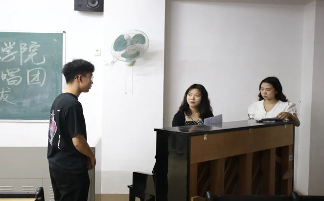 在集中训练之前,团学针对五四大合唱成员开展选拔工作,同时训练的导师们对同学们的音调、音色、音准进行了考核。