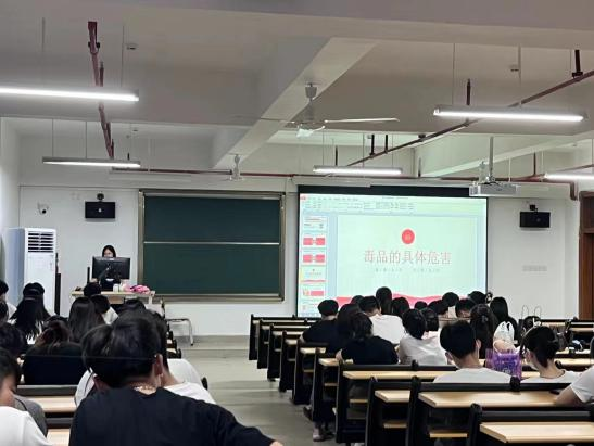 班会伊始,各班会主持人首先介绍了什么是毒品。根据我国法律规定,毒品是指鸦片、海洛因、甲基苯丙胺(冰毒)、吗啡、大麻、可卡因以及国家规定管制的其他能够使人形成瘾癖的麻醉药品和精神药品。随后,主持人从毒品的来源、对人中枢神经的作用、毒品的自然属性以及毒品流行的时间顺序等来进一步介绍什么是毒品。接着,主持人从依赖性、非法性、危害性三个方面来体现出毒品的特征,进一步介绍了毒品对于个人、家庭以及社会所带来的具体危害。在场的同学们都聚精会神地听着主持人的介绍。
