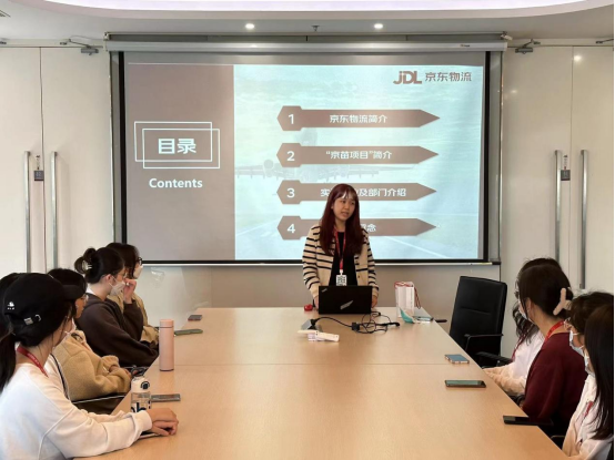 会议开始,赵沅君经理首先对“京苗班”学员的到来表示热烈欢迎。在会议上,赵沅君经理分别向大家介绍京东物流的发展历程、“京苗项目”的概况、京东企业文化价值观以及实训期间的计划安排。并鼓励同学们以“京苗班”为机遇,一步步成为能够独当一面的小组负责人。希望“京苗班”的学员们能够把握此次机会,全面提高自己的工作能力。