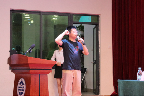 迎难而上,不负初心,由在校生代表20电商1班邹怡清上台发言。她代表公司全体在校生向即将毕业的员工表示祝贺。祝贺毕业生们以蓬勃姿态迎接下一片更广阔的天地,保持自信,积极面对生活和就业的挑战。并向全体毕业生倡议做到安全文明离校,为老员工活完美画上句号。 紧接着,由学工办主任刘丹进行离校工作安排。为员工们详细讲解了明天即将举行的毕业典礼的流程,并强调了毕业典礼过程中的的纪律要求以及行为规范。仔细嘱咐毕业生离校前应提前准备好的相关材料以及实习阶段应注意的事项。在毕业生宣誓人梁耕源的带领下,全体师生起立,右手握拳并集体宣誓:不负青春韶华,涌动青春力量,从广州理工出发,勇敢追梦。