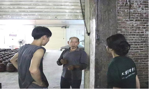 (文迅达)7月3日下午4点,助力“梅”好未来实践队在当地团委负责人何伟钧、乡村振兴志愿者刘志宏等人的带领下,来到当地的红岩寨酒厂进行参观调研,实地调研考察梅州市平远县上举村本土米酒产业的产品结构和销售情况。