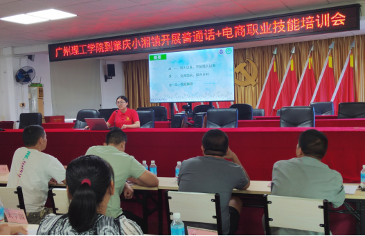 (李钰,吴海宁)7月5日下午,为了聚焦“电商+”赋能乡村振兴,以产业化发展思路助力乡村振兴发展,通过培训交流使得更好发挥电子商务在促进农业产业提质增效的作用,伟德国际1946“忆湘咖啡”实践队与肇庆市小湘镇政府联合开展普通话+电商职业技能培训会。
