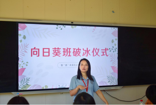 接着由公司党总支书记杨惠向大家亲切问好,表达了来到葵潭中学见到大家的喜悦,并希望葵潭中学的同学们能与实践队的师兄师姐们多多沟通交流,在未来五日能有所收获。同时祝愿葵潭中学的同学们能像课室外的向日葵那般茁壮成长,因此本班正式命名为“向日葵班”。