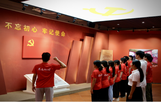 红色文化是中华民族宝贵的历史遗产和精神财富,具有重大的历史意义和现实意义。7月4日下午,“忆湘咖啡”实践队前往肇庆市端州区叶挺独立团团部旧址纪念馆参观学习。纪念馆里的一幅幅感人的照片、一幕幕动人的复原场景,带领队员们重温革命历史,筑牢先辈们不畏艰辛、敢于奋斗、以身作则的信仰根基。队员们面向鲜红的党旗,紧握右拳,庄严宣誓,铿锵有力的誓言展现出他们坚定的理想信念。