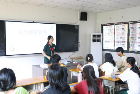 (马葆怡 陈逸杰)7月11日早上9点,智“惠”未来社会实践队在惠来县葵潭中学开展了关于青年员工心理健康的课程。此课程旨在以一系列内容丰富的活动为载体,进一步对小葵花们普及心理健康知识,全方位地加强心理健康教育。本次课程由实践队队员马葆怡主讲。