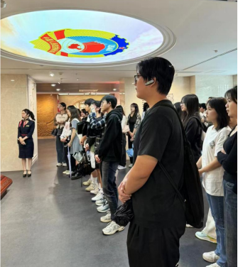 同学们在广州政协文史展示中心参观了《人民政协与新中国诞生展》。进入展厅后,讲解员以抗战胜利后中国面临向何处发展的抉择问题为切入点,向同学们介绍了人民政协诞生与新中国发展的那一段岁月。在展厅上,大家看到了毛主席修改“五一口号”的手稿、1949年7月新政协筹备会期间发出的《征求国旗、国徽图案及国歌词谱启事(草案)》等珍贵史料,同学们还重温了党史、国史、统一战线史、人民政协史的经典片段,了解了人民政协和广州人民政协与广州共同成长的发展历程与辉煌成就。