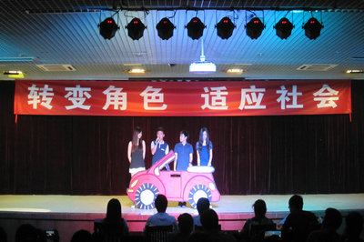 首先,在校生代表邓壁童和毕业生代表李青文先后上台进行了激动人心的发言。接着,伍曙主任上台为晚会致辞,她在言语之间真情流露,全场师生深切地感受到了她的不舍之情,同时,场下观众也为她对我系毕业生的祝福话语所打动,晚会由此拉开了序幕。话剧《梦回天院》以重现校园生活的场景为线索进行了一番精彩的演出,赢得了毕业生们一阵又一阵的欢笑声和掌声;接下来的互动环节,毕业生热情参与,一度把晚会推向高潮;最后,一首充满感情的抒情歌曲《第一时间》使晚会得以圆满结束。