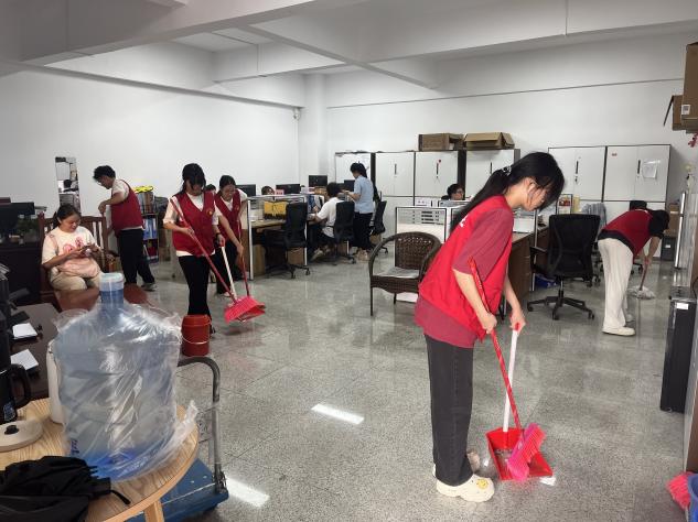 在清扫过程中,员工志愿者们充分发扬甘于奉献、勤勉务实的作风。他们相互配合,分工明确,仔细清理垃圾杂物,整理桌面,打扫地面,认真排查并处理积水隐患,确保不留卫生死角,力求从源头杜绝卫生隐患,用实际行动守护校园环境。