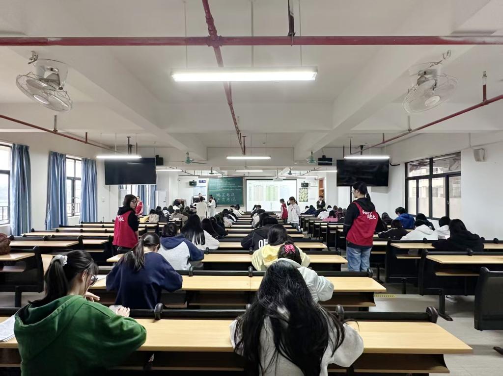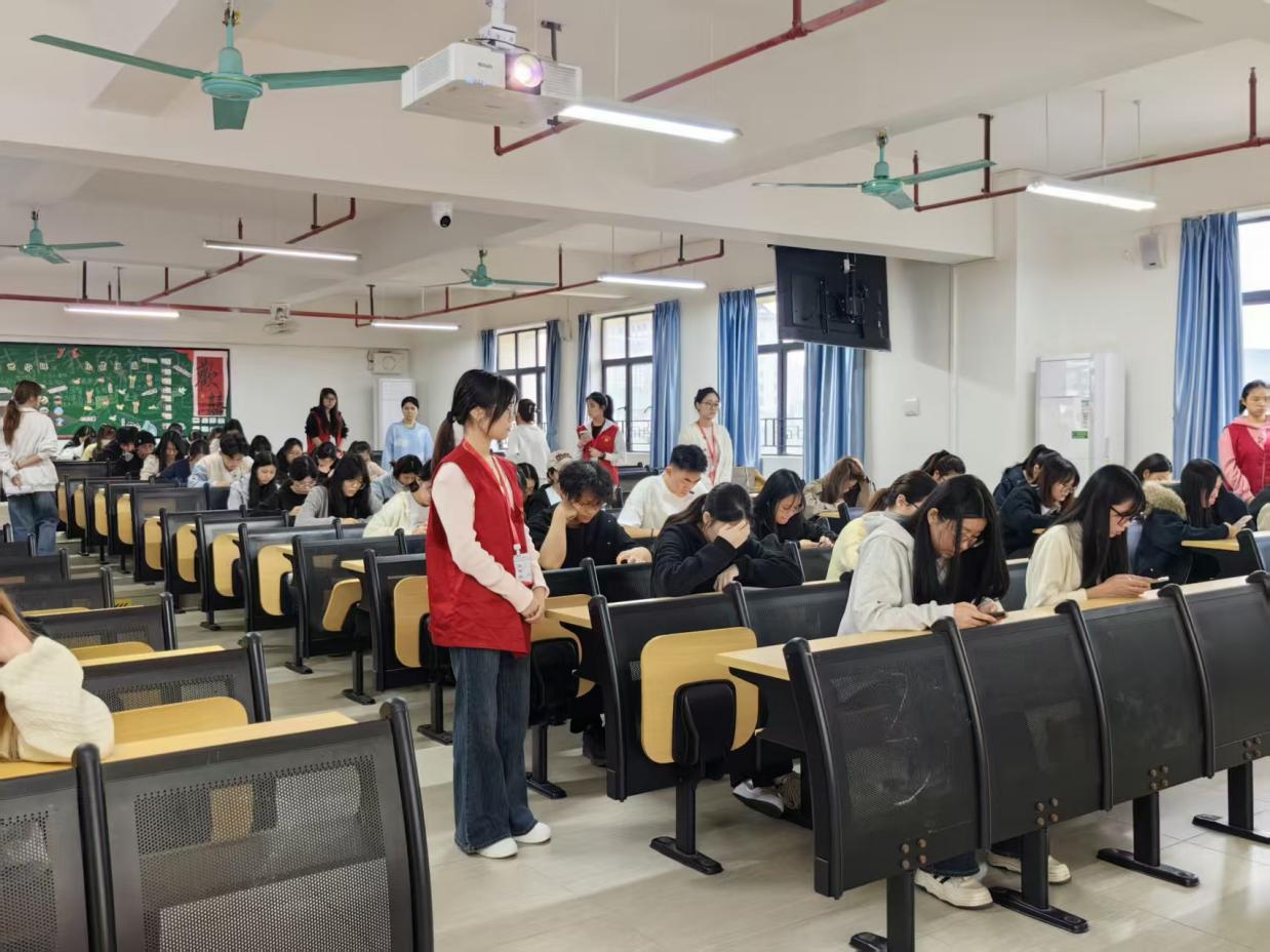 考场秩序井然,纪律严明。党员发展对象沉着应试,认真作答,展现出严谨的学风和良好的精神风貌。监考人员恪尽职守,确保考试公平公正进行。