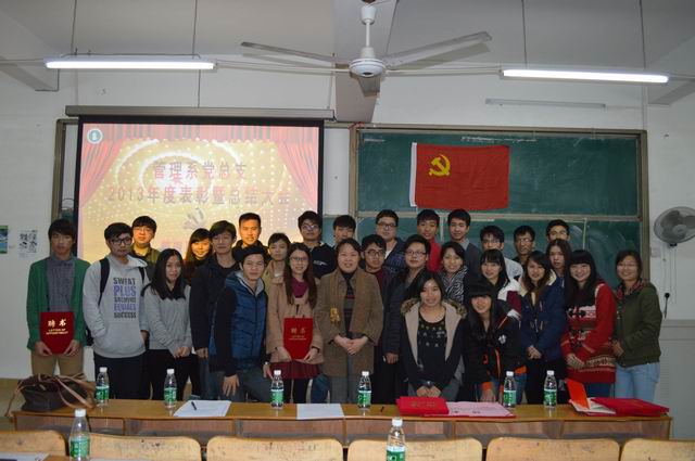 本系讯(通讯员:蔡思楠)12月12日,我系党总支2013工作总结暨表彰大会在7栋318隆重举行,出席本次会议的有我系党总支书记杨晓文、党总支组织委员秦文飞、党总支宣传委员林成园、团总支书记钟劲以及办公室辅导员崔运玲、张方超、王翔。