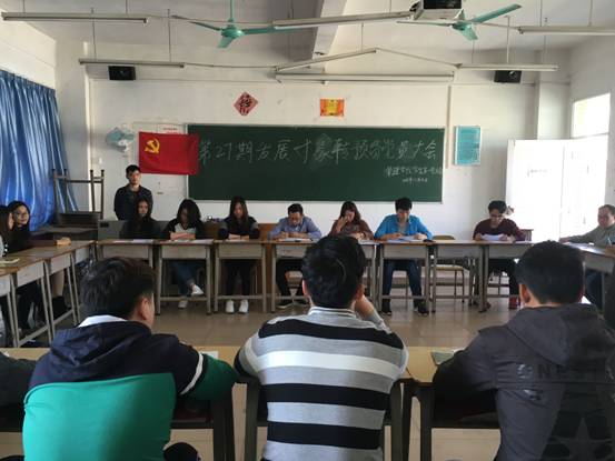 会议中,每个发展对象陈述自己在考察期间的表现。首先,6名27批发展对象从思想,学习,生活,群众关系和党性修养等各方面进行个人陈诉,紧接着,支委及正式党员对27批发展对象们提出关于党规党章内容理论知识和时事的考核,随后支委和正式党员进行无记名表决投票。