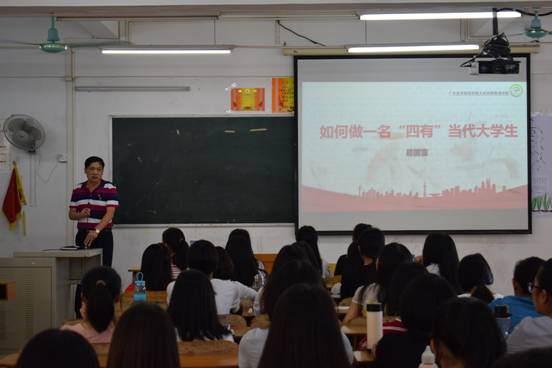 易书记用朴实语言、用心讲述,为在座员工打开思想大门,不失风趣地讲述了关于“四有”内涵以及如何践行“四有”等两个主题的内容。易书记倡导同学们要转换思想和观点,尽快适应大学的生活和环境。在生活和学习上,要与同学们团结友爱,互帮互助。强调了老员工必须把“四有”贯穿于学习、生活、工作的全过程,为新生扣好了社会价值观——个人层面的第一颗纽扣。