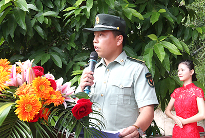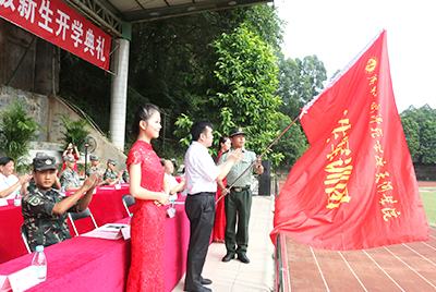 | 蔡敏副董事长为军训团授旗 |
