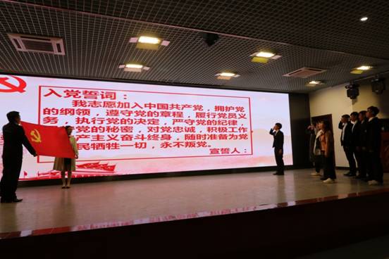 伴随着雄亮的国歌,会议正式开始。在江亲狮同志的带领下,第31期预备党员面向党旗庄严宣誓,铮铮誓言展现着新生代党员的精神风貌。