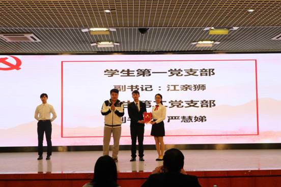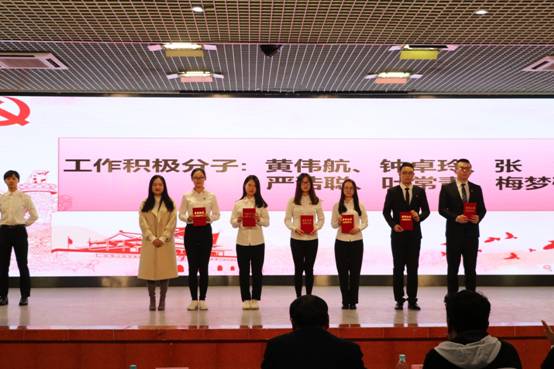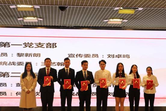 公司教工党支部宣传委员、员工第一党支部书记伍小英同志宣读“优秀入党积极分子”、“工作积极分子”的表彰决定。伍小英同志和黄浩同志分别为获奖同志颁发荣誉证书。紧接着,伍小英同志为2018年度员工党支部支委黎新朗等7位同志颁发聘书;党委委员、组织部部长陈朝阳同志为2018年度员工党支部第一、第二支部副书记江亲狮、严慧娣2位同志颁发聘书。
