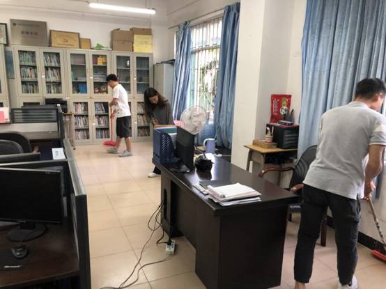 同志们于6栋集结完毕后,公司领导对清洁工作做出了指示,各党员同志迅速进行分组分工,积极投入了清洁工作当中去。活动中,各党员同志都秉持吃苦耐劳的精神,相互帮助,并且认真细致,对区域的每一个角落都进行了极为认真的打扫,一起为校园卫生贡献自己的一份力量。