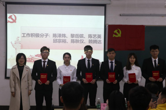 伍小英同志宣读“优秀入党积极分子”、“工作积极分子”的表彰决定,并为获奖同志颁发荣誉证书。紧接着,伍小英同志为2019年度员工党支部支委严浩聪等7位同志颁发聘书;然后为2019年度员工党支部第一、第二支部副书记王艺翰,黄伟航2位同志颁发聘书。