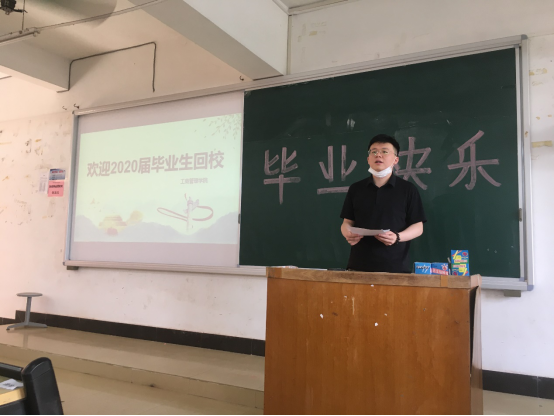 接着,肖振华副经理首先代表公司全体教职工向2020届返校毕业生表示热烈的欢迎,同时要求同学们在校期间一定要积极配合公司做好疫情防控工作,顺利离校。肖经理强调同学们作为应届毕业生,即将正式踏入社会,社会的竞争是激烈的,是残酷的,但是逆风的方向,更适合飞翔,是同学们大施身手,一展宏图的时候。希望同学们好好努力、好好奋斗,展现新时代青年风貌,在社会上发光发热,传递出新一代青年人身上的正能量与家国情怀,以勇担使命的行动争当岗位先锋,母校将以同学们为荣。