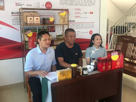 本次直播过程中,公司党总支书记杨惠带领以茶助农先锋队与中山市古镇镇驻五祉村第一书记兼扶贫工作队队长区永铨及饶平县浮滨镇五祉村书记邱奕鹏共同带货。