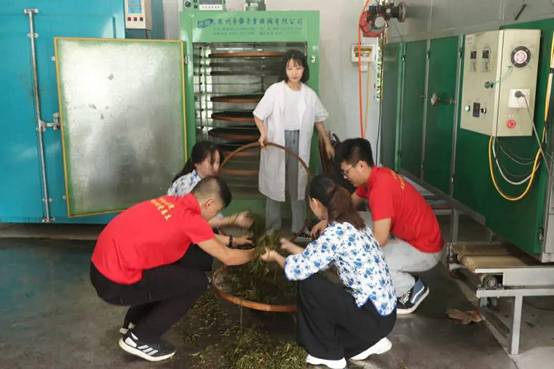 本地队员巫泽慧和茶厂管理人员为队员们耐心讲解茶叶采青、摇青、杀青、揉捻、烘焙、复火等加工过程。在茶厂管理人员的指导下,队员们亲身体验茶叶加工。