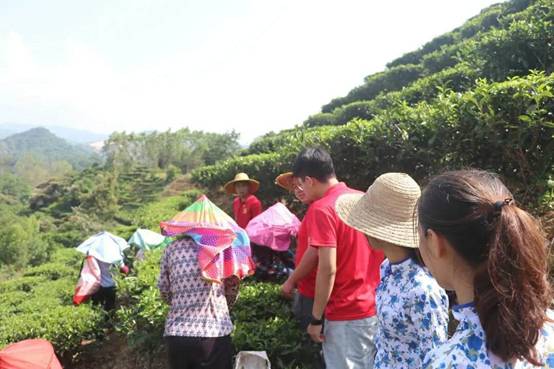 8月24日,以茶助农先锋队跟随饶平县浮滨镇五祉村党支部副书记邱文光前往茶园及茶厂参观体验。