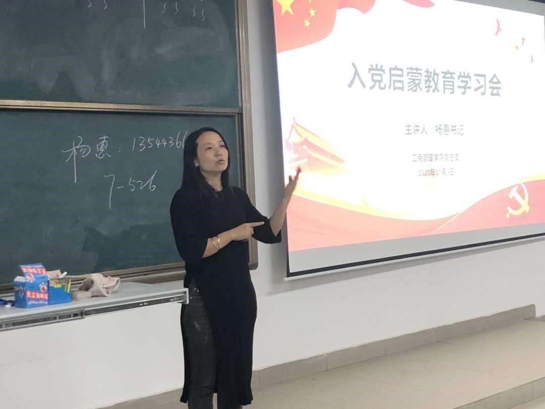 杨惠书记向同学们提出几点要求,一是要端正入党积极分子的态度,提高思想政治觉悟;二是要热爱祖国,热爱我们的党和人民;三是,作为一名老员工要遵守校园规章制度,同时要团结同学,尊师重道,以乐观向上的态度去面对校园生活。